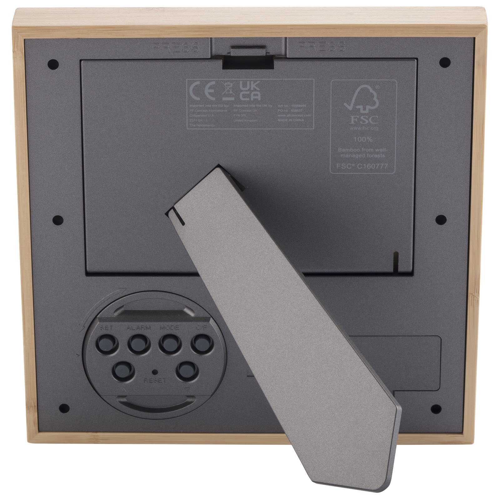 Le cadre photo Sasa en bambou offre un ajout élégant et fonctionnel à votre maison ou à votre bureau. Avec le boîtier principal en bambou d’origine responsable et le boîtier arrière en plastique recyclé, ce cadre photo respire l’élégance naturelle tout en favorisant la durabilité. Le cadre est doté d’un verre LCD qui assure un affichage clair et net de l’heure, du mois, de la date, du jour de la semaine et de la température en mode normal. Il dispose également d’une fonction d’alarme/de mise en pause pour vous aider à commencer votre journée à l’heure. Le mode de rappel d’anniversaire permet de garder une trace des dates importantes, tandis que le mode minuterie est parfait pour chronométrer les tâches ou les activités. De plus, le mode d’appréciation de la musique offre une sélection de jusqu’à 7 chansons facultatives pour votre plaisir. La taille de la fenêtre photo est de 127 x 89 mm. Comprend 2 piles AA. Livré avec un coffret cadeau en papier Kraft et un manuel d’instructions.