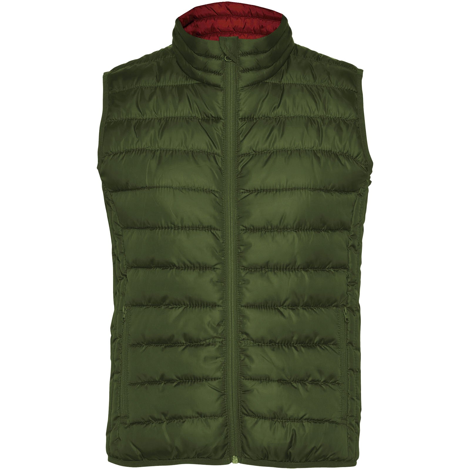 Gilet sans manches au toucher plume pour femme. Fermetures zippées inversées assorties. Deux poches avant avec fermeture zippée. Doublure intérieure contrastée. Bordure élastique assortie à l’ourlet. Vêtement léger et pliable. Coupe ajustée. Résistant à l’eau. Modèle coupe-vent. Le mannequin mesure 174 cm et porte la taille S.