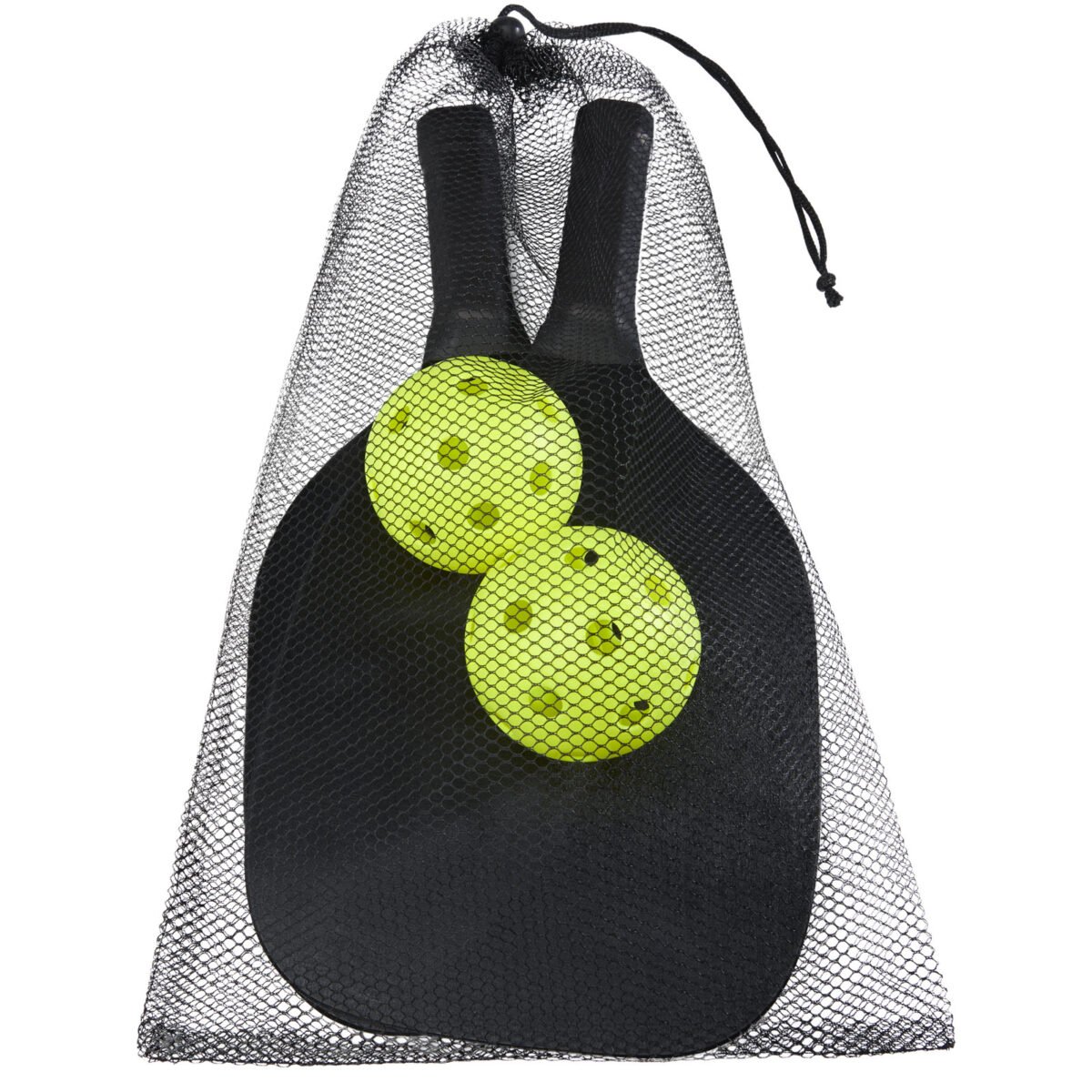 Cet ensemble de raquettes en bois de peuplier offre beaucoup de plaisir et permet de jouer à deux sur la plage, au parc ou dans le jardin. Les raquettes ont une taille de 40 x 20 x 0,7 cm et sont peintes en noir, ce qui fournit une grande surface pour l’impression de n’importe quel logo. Les poignées sont enveloppées de ruban en PU pour une prise en main maximale lors d’une partie intense. L’ensemble est complété par 2 balles en matériau PP et est emballé dans un sachet de rangement en polyester maillé d’une taille de 45 x 26 cm. Avertissement ! Ne convient pas aux enfants de moins de trois ans. Petites pièces. Risque d’étouffement.