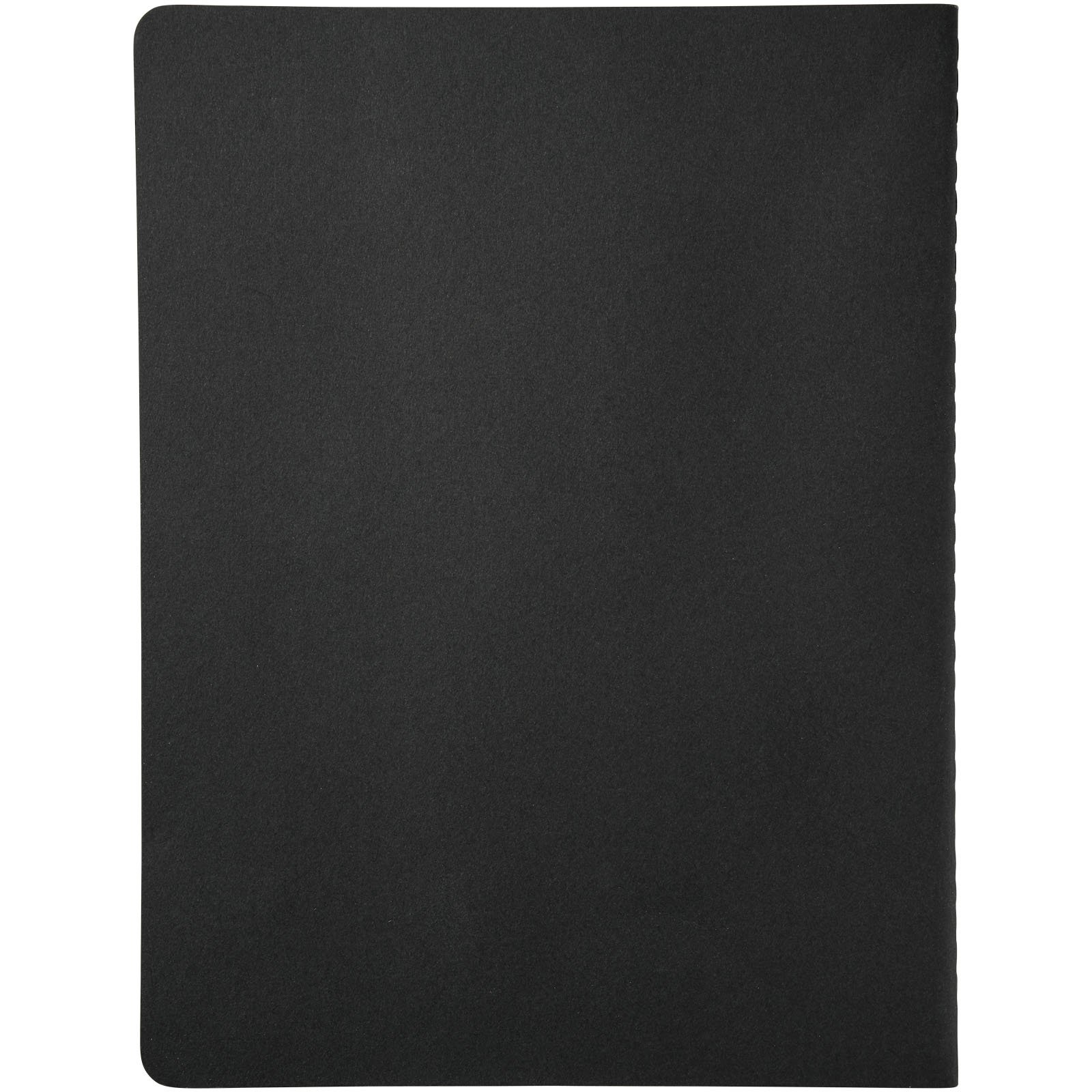 Avec couverture en carton aux coins arrondis. Piquage visible au dos, avec rabat pour rassembler les feuilles volantes. Contient 120 pages couleur ivoire lignées de 70 g/m². Les 16 dernières feuilles sont détachables. La quantité unitaire est d’une pièce.