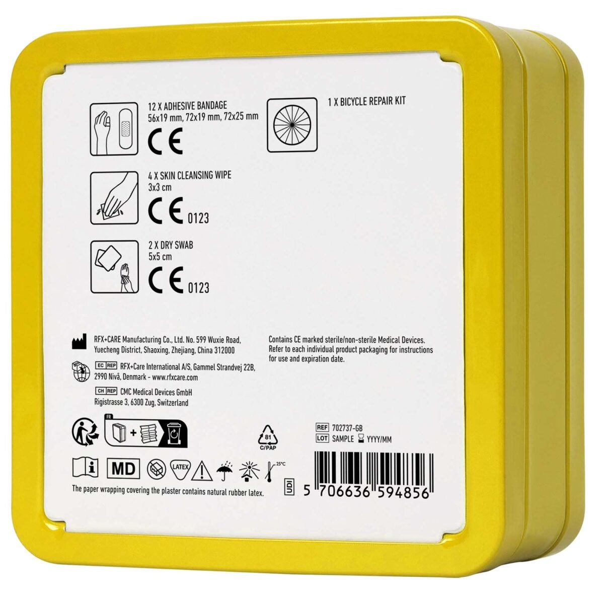 Ce kit compact, idéal pour toutes les randonnées à vélo, vous permet de faire face aux blessures mineures et aux crevaisons pendant vos déplacements. Il comprend 12 pansements résistants à l’eau, 4 tampons nettoyants pour la peau, 2 écouvillons secs et 1 kit de réparation. Tous les produits de premiers secours et de soins inclus sont conformes aux réglementations européennes en vigueur, pour une aide sûre et fiable lors de vos aventures à vélo. Fourni dans une boîte réutilisable et recyclable.