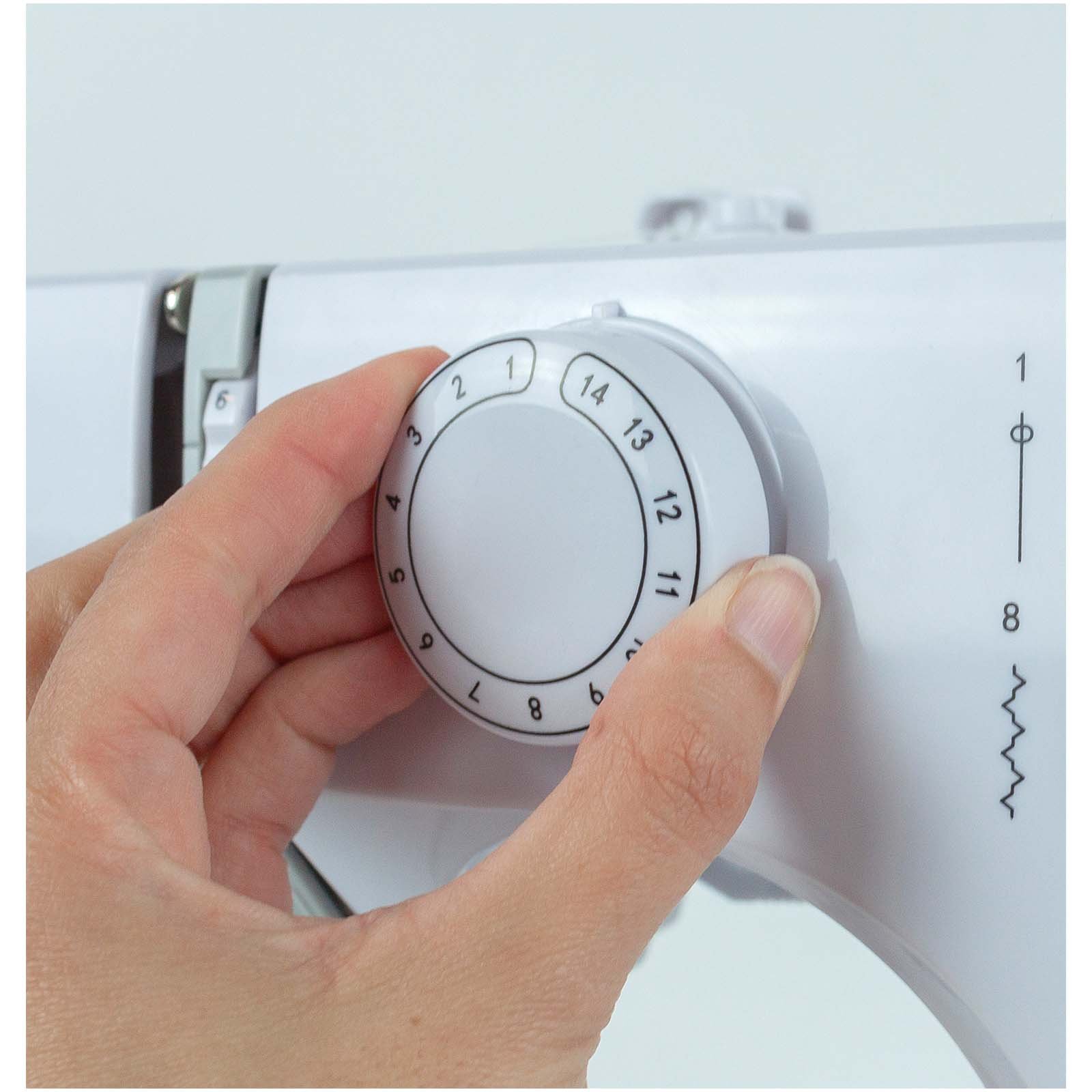 Cette machine à coudre dispose de 14 motifs de points pour la personnalisation des textiles, avec une largeur et une longueur réglables pour chaque point. Elle inclut un point zig-zag extensible, idéal pour les tricots, les ourlets et le surfilage. Vous pouvez coudre en avant et en arrière, rembobiner automatiquement le fil, le couper, régler la tension de la couture et contrôler la piqûre. Un raccourci direct vers la bobine permet une mise en place rapide et facile.