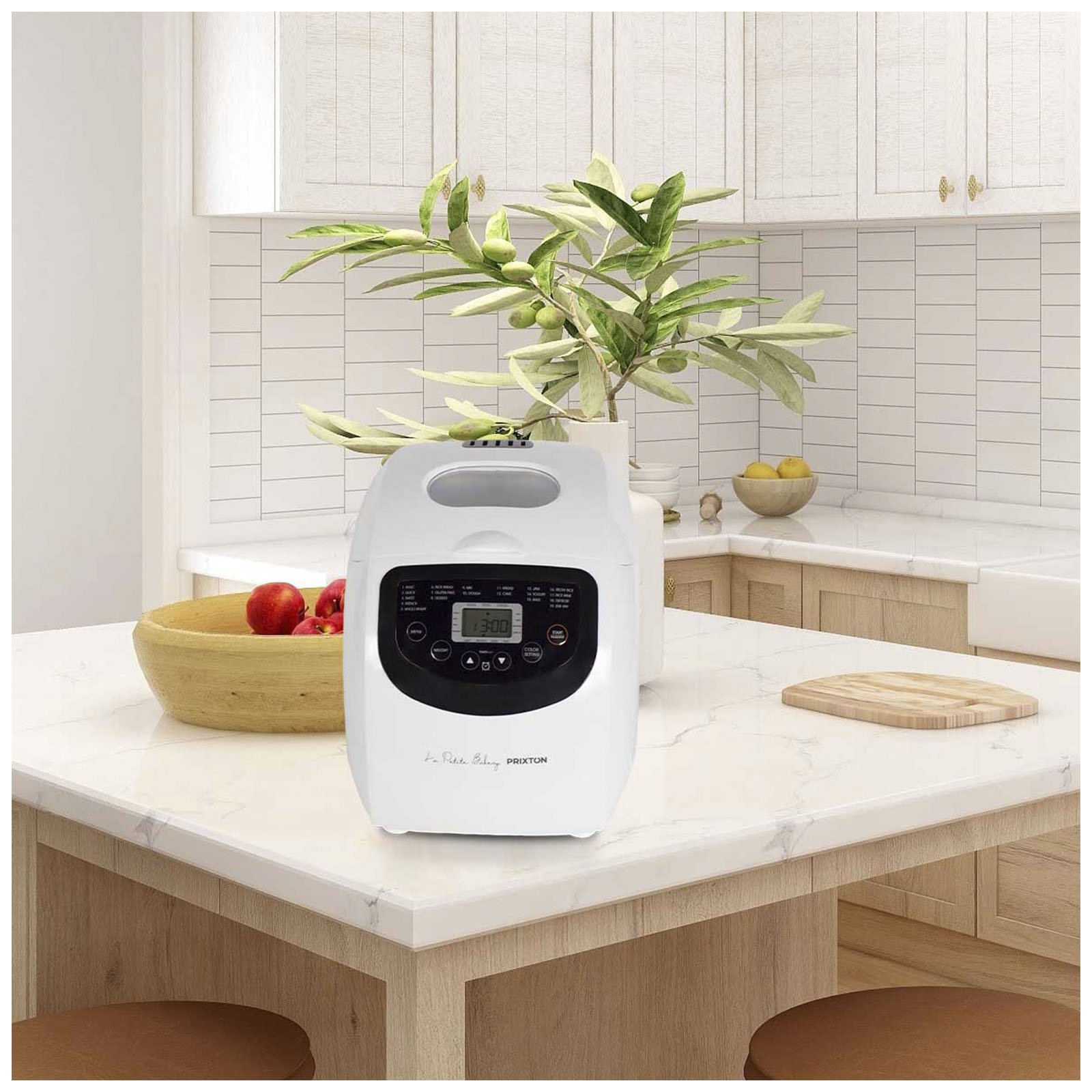 Machine à pain avec un réservoir anti adhésif amovible d’une capacité de 1 000 g et 19 réglages différents : Basique, rapide, sucré, français, céréales complètes, riz, sans gluten, dessert, mélange, pâte, pétrissage, gâteau, confiture, yaourt, cuisson, riz crémeux, vin de riz, décongélation et sauté. Livrée avec 3 niveaux de grillage pour satisfaire tous les goûts. Conçue avec une fenêtre en verre sur le dessus pour suivre facilement la progression. La machine à pain dispose également d’un système de sécurité pour éviter la surchauffe, ainsi que d’une fonction de maintien au chaud. Livrée avec une tasse à mesurer, une cuillère et un crochet. Puissance : 650 W. Niveau sonore : < 60 dB.