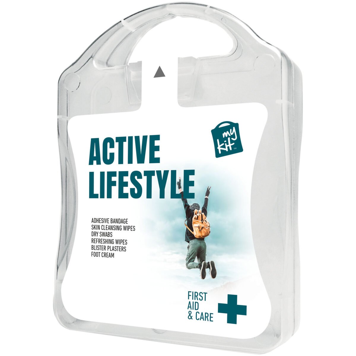 Le kit pour mode de vie actif MyKit couvre les besoins en matière de soins de base des plaies, des ampoules, ainsi qu’un gel de récupération pour les pieds. Idéal pour les activités telles que la marche, la randonnée, la course à pied, le golf, etc. Tous les produits de premiers secours et de soins contenus dans la trousse sont conformes à toutes les réglementations européennes en vigueur. Le prix comprend le marquage sur toute la surface.