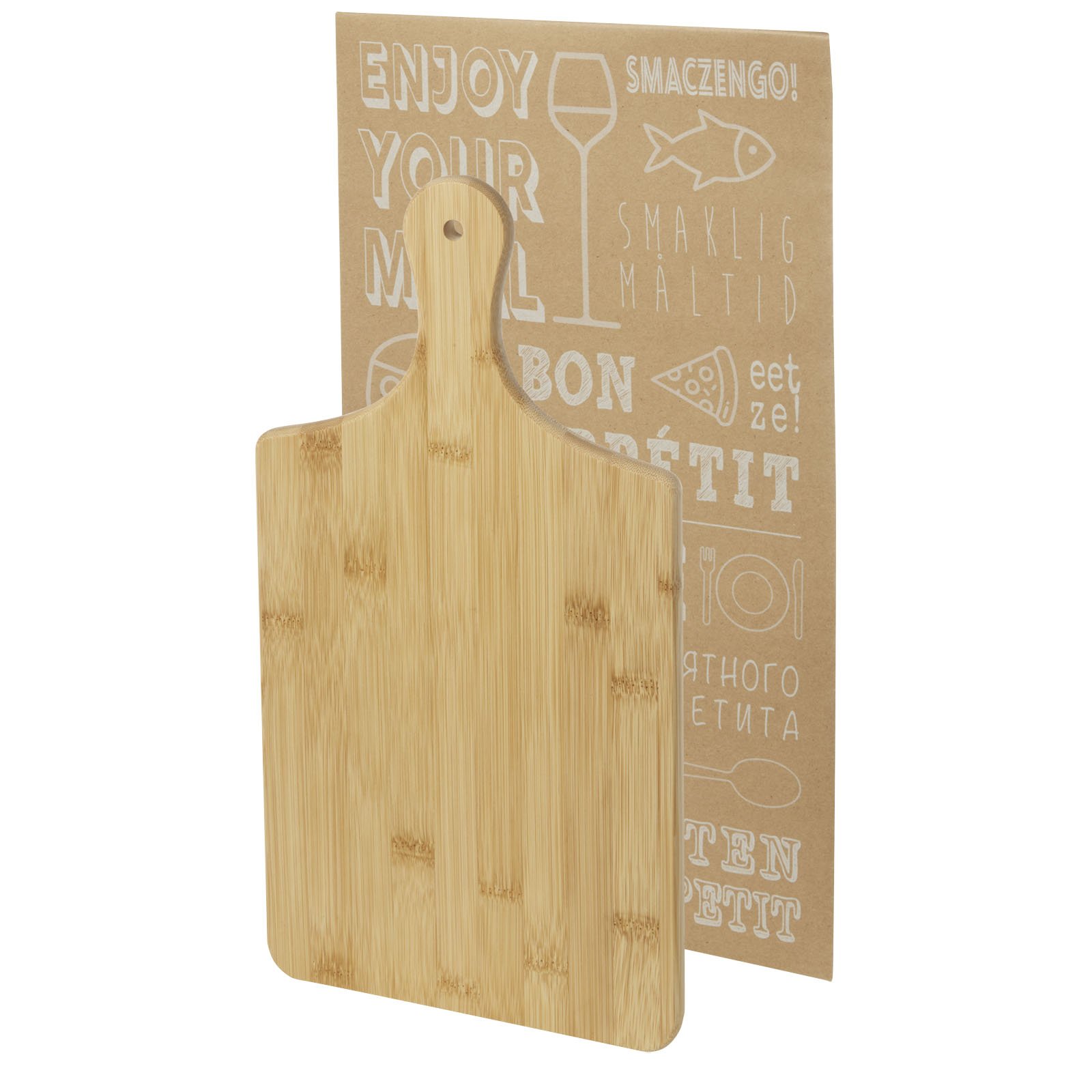 Planche à découper en bambou dont l’origine et la production sont conformes aux normes de durabilité. La planche peut également être utilisée pour servir des tapas.