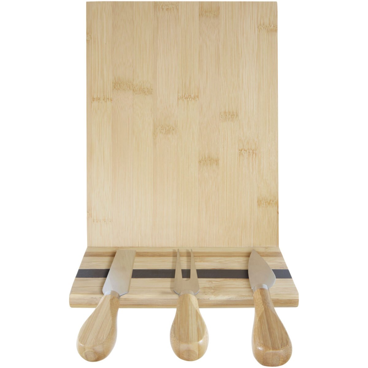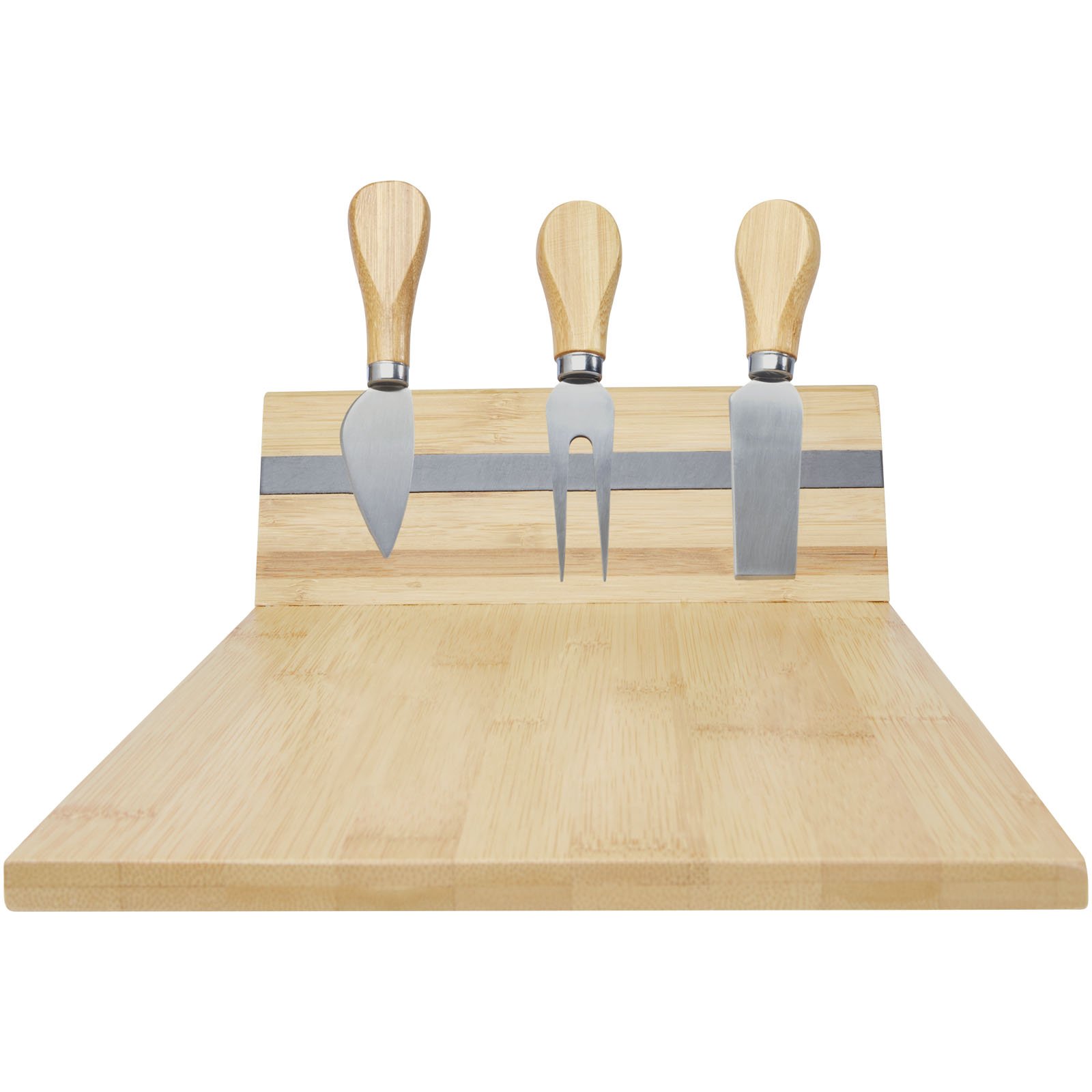 Ensemble pour fromage composé de 4 pièces en bambou, dont un plateau à fromage (30 x 20,2 x 7,6 cm), 2 couteaux à fromage (12,5 x 2,5 cm et 12,5 x 2,7 cm) et une fourchette à fromage (13,5 x 2,4 cm). Sur le côté du plateau à fromage, il y a une bande magnétique pour fixer les accessoires, vous permettant de servir le fromage avec style. Le bambou utilisé est sélectionné et produit selon des normes durables.
