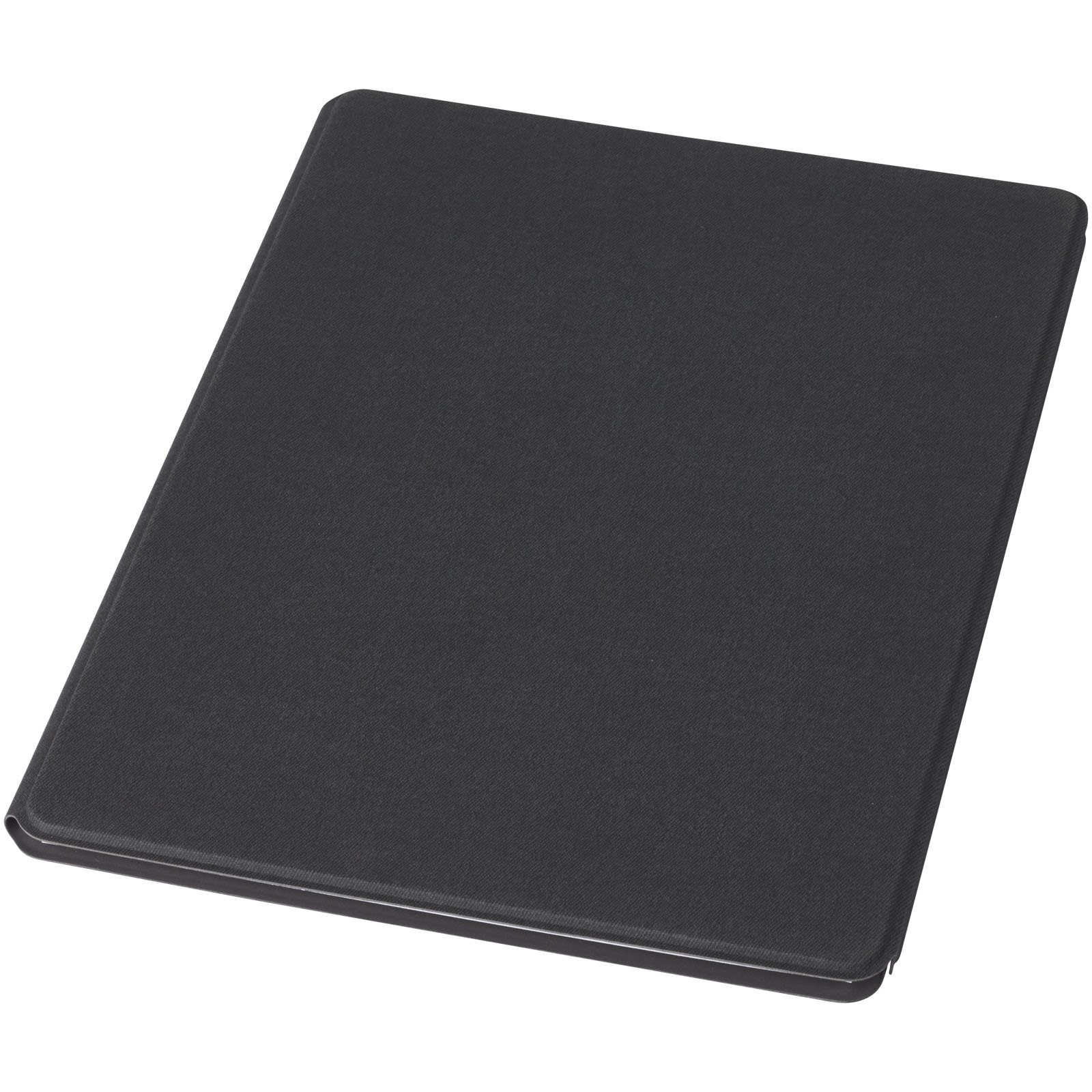 Le porte-documents Kunveno certifié RCS est partiellement fabriqué à partir de polyester post-consommation, ce qui en fait un choix plus durable puisqu’il contribue à réduire l’utilisation de matières premières vierges. Il est doté d’une fermeture aimantée et de 20 feuilles blanches lignées avec du papier recyclé de 80 g/m2 provenant de sources durables.