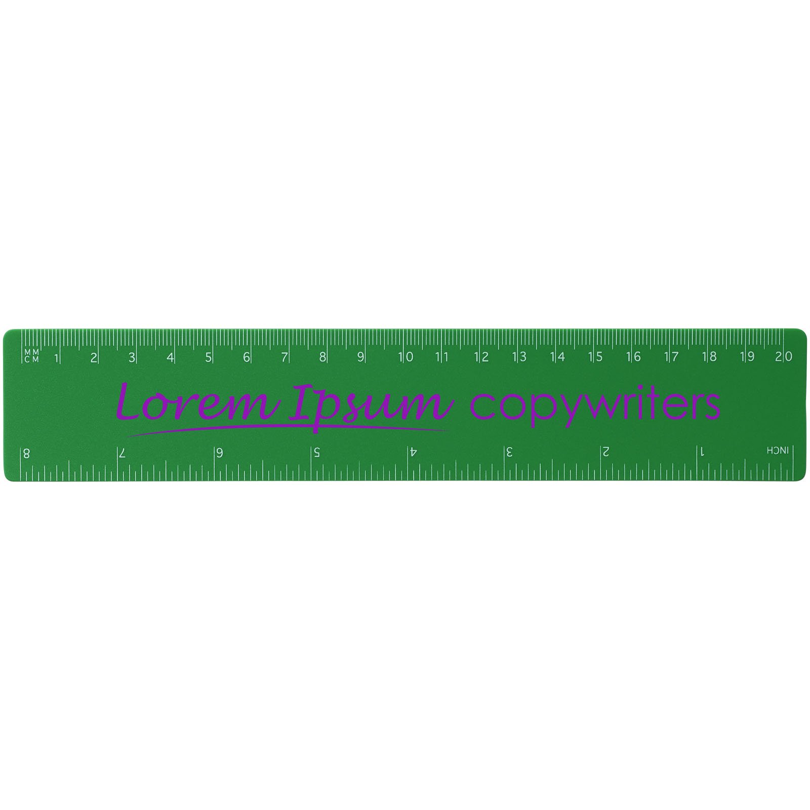 Règle flexible en plastique léger avec mesures en pouces et en centimètres. Merci de noter que les indications de mesures sont imprimées en même temps que la personnalisation. Les règles non personnalisées n’auront donc aucune indication de mesure.