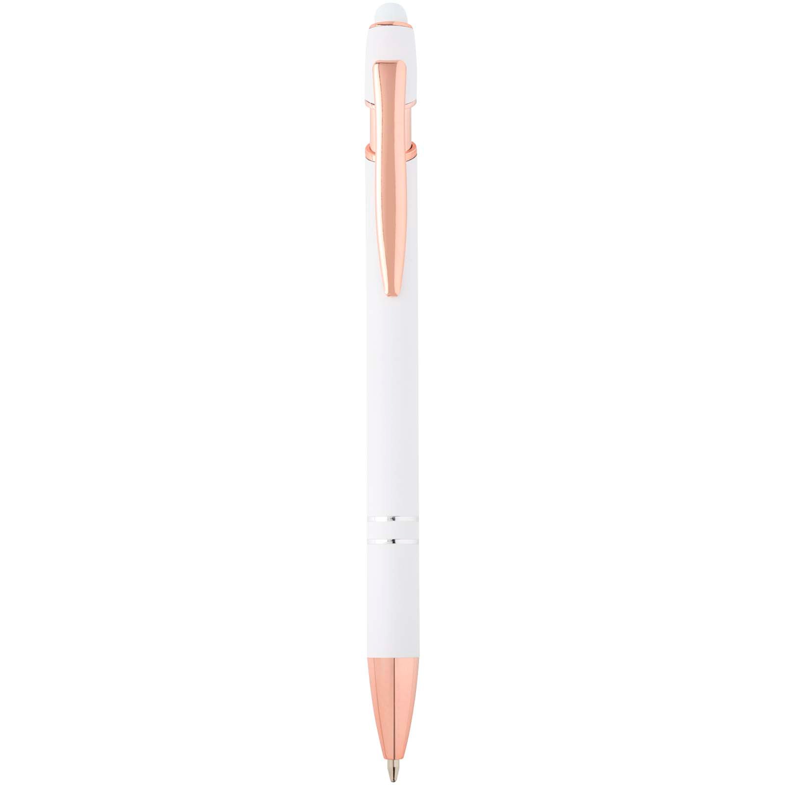 Le stylo bille Nanna avec finition or rose est pourvu d’un corps en aluminium recyclé et d’un stylet tactile en silicone. L’aluminium recyclé réduit également la quantité de déchets dans les décharges et contribue ainsi à la conservation des ressources naturelles, tout en réduisant les émissions de gaz à effet de serre. Couleur de l’encre : Bleue. Longueur d’écriture : 800 mètres. Taille de la plume : 1,0 mm.