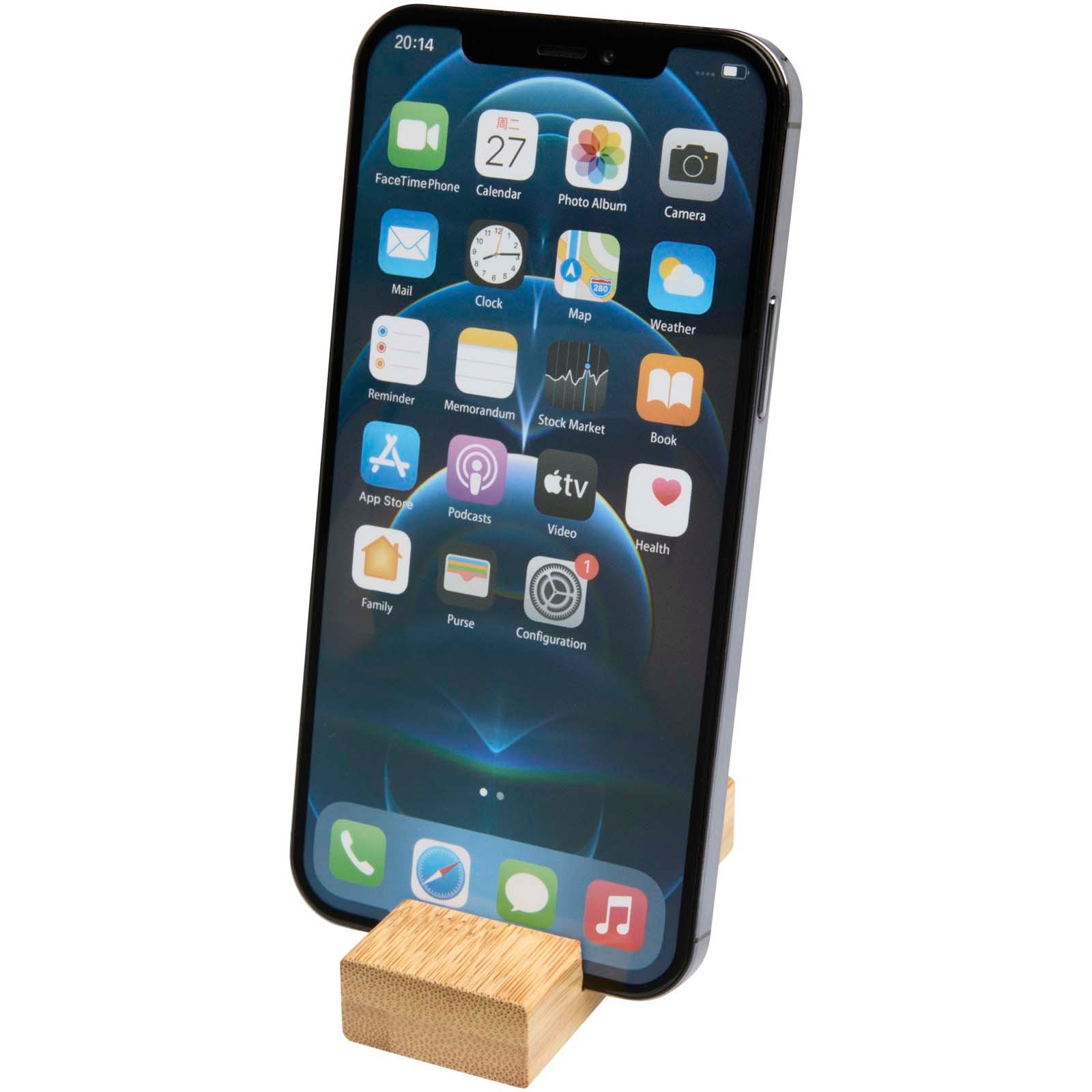 Support de téléphone en bambou Bosona avec porte-clés