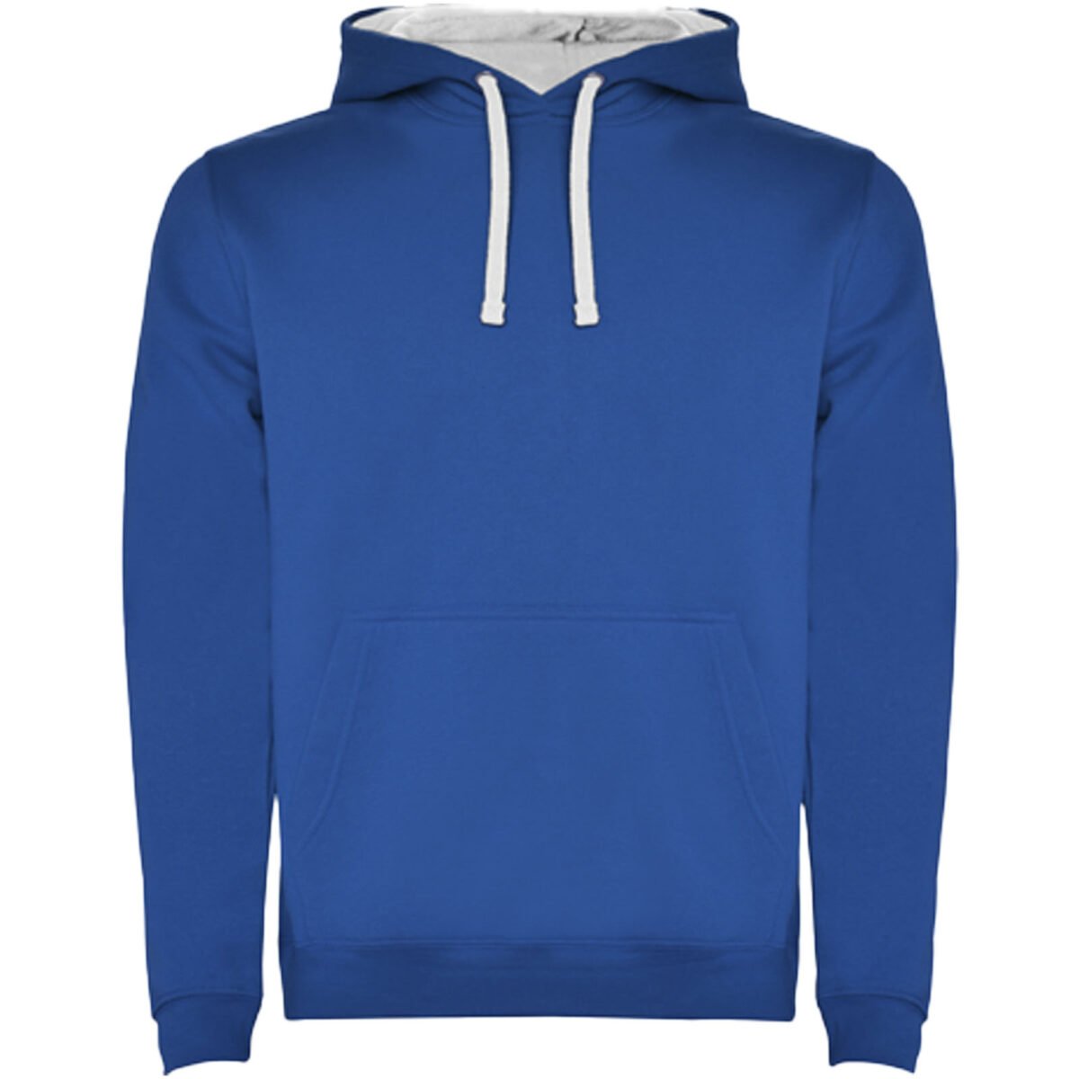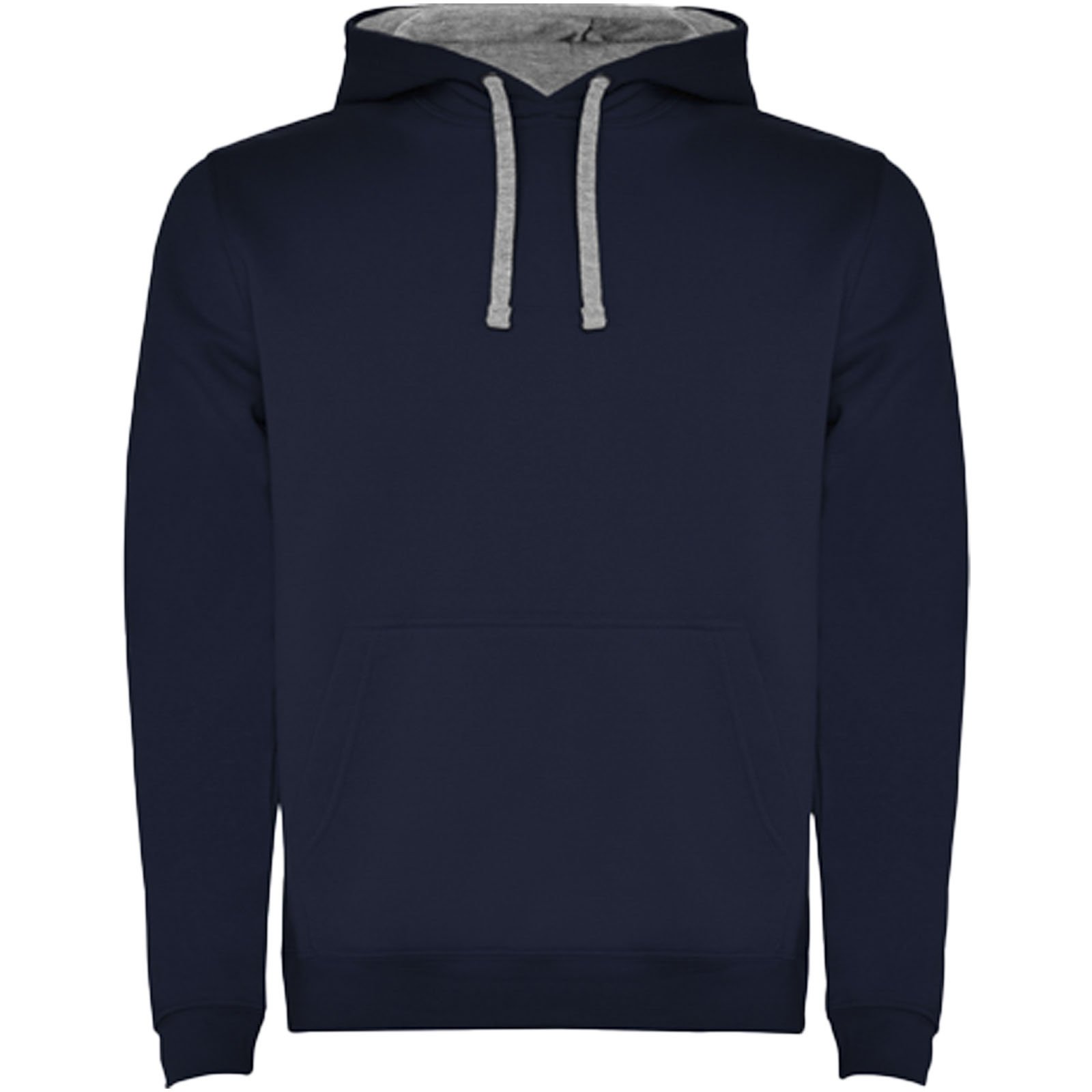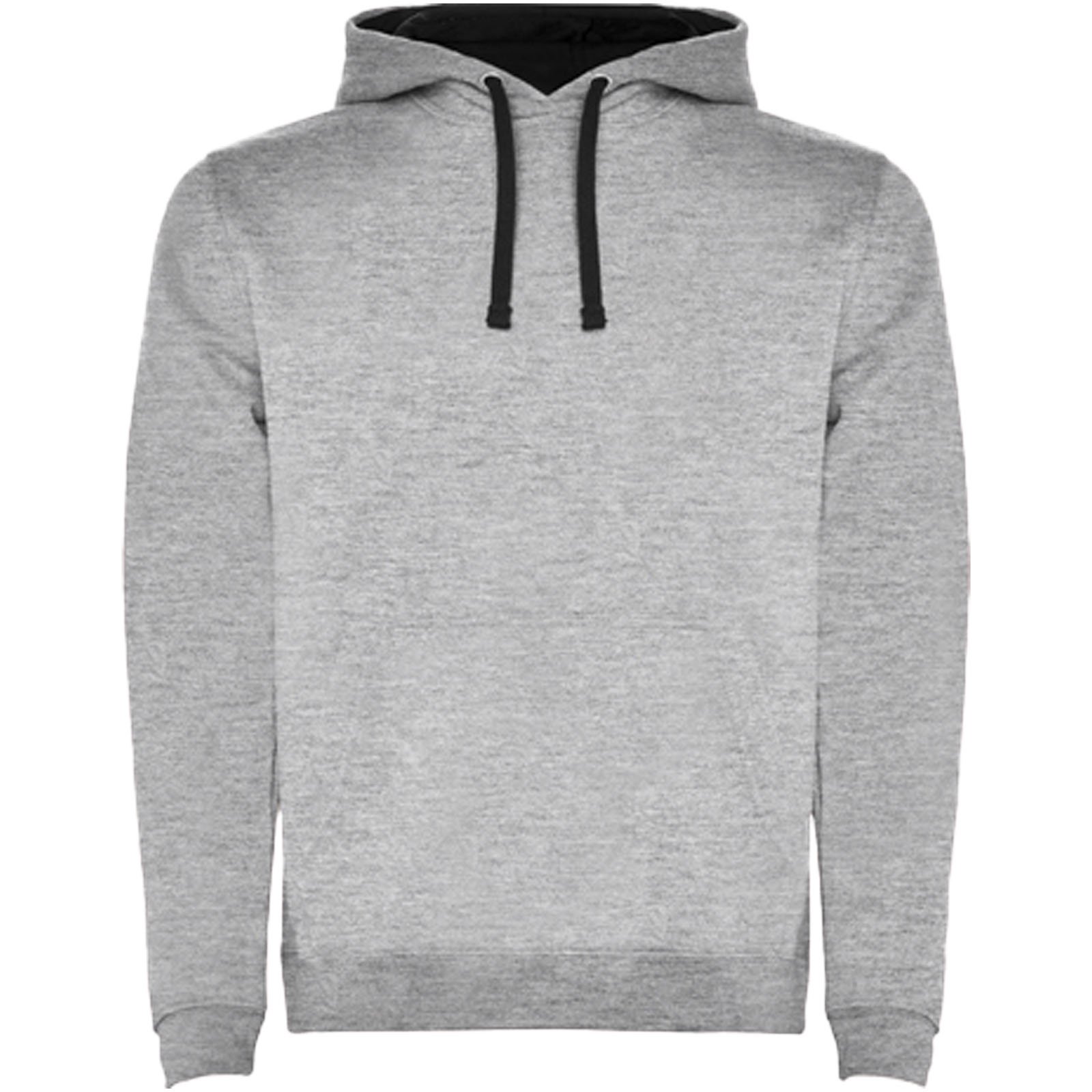 Sweat à capuche avec double tissu, cordon de serrage réglable, coutures couvertes renforcées au niveau du col et poche de style kangourou. Disponible en uni et bicolore. Bord-côte en élasthanne 1×1 aux poignets et à la taille. Étiquette amovible. Le modèle mesure 185 cm et porte la taille M.