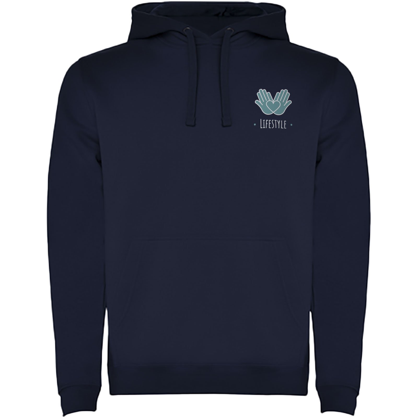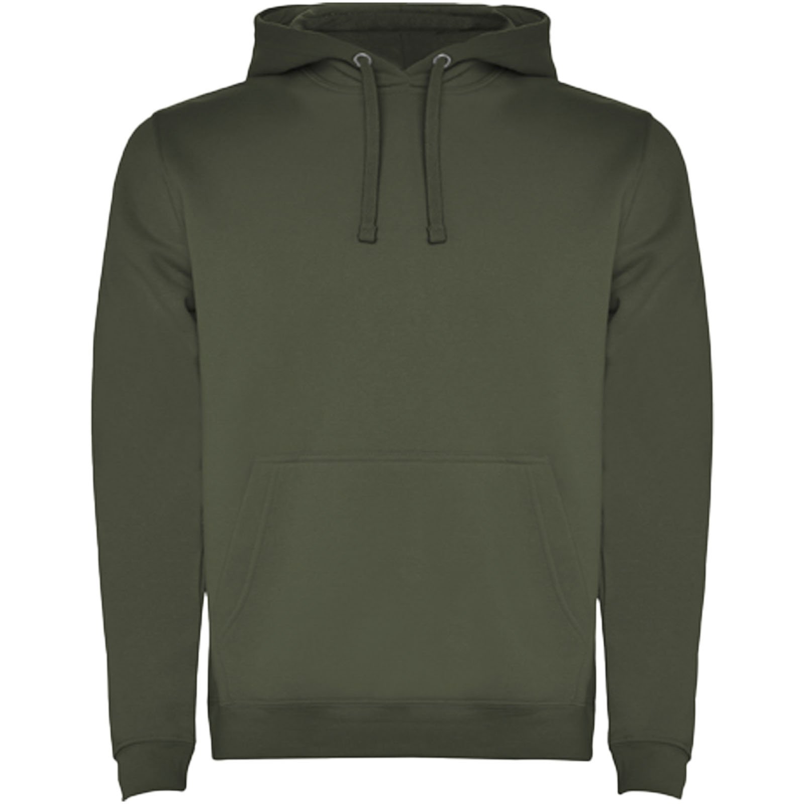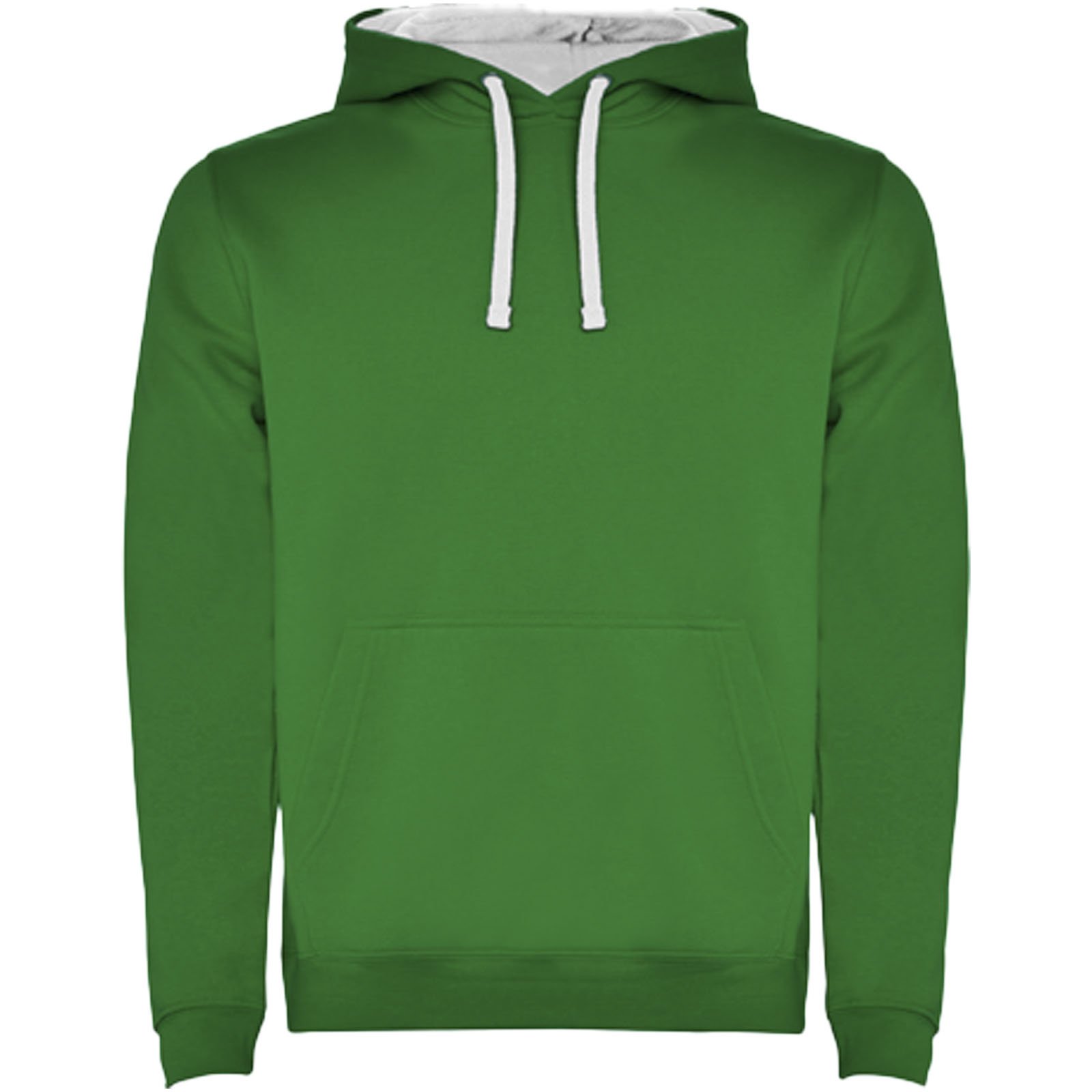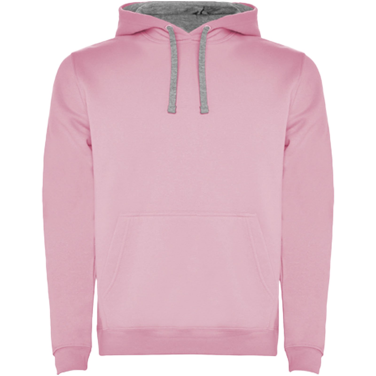 Sweat à capuche avec double tissu, cordon de serrage réglable, coutures couvertes renforcées au niveau du col et poche de style kangourou. Disponible en uni et bicolore. Bord-côte en élasthanne 1×1 aux poignets et à la taille. Étiquette amovible. Le modèle mesure 185 cm et porte la taille M.
