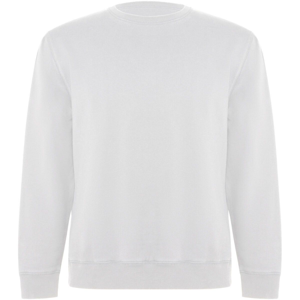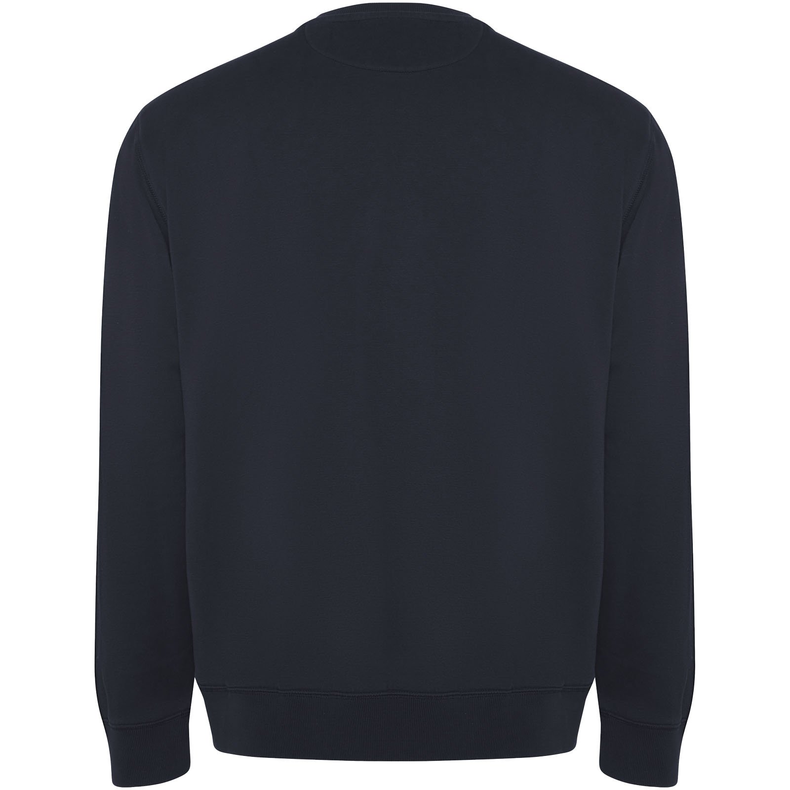 Sweat unisexe en coton peigné biologique et polyester recyclé. Col, poignets et ourlet en tissu côtelé 2×1. Coutures surjetées décoratives aux épaules, aux emmanchures, au col, aux poignets et à l’ourlet. Couture demi-lune à l’intérieur du col arrière. Étiquette détachable. Emballage individuel recyclé. Le mannequin mesure 190 cm et porte la taille L.