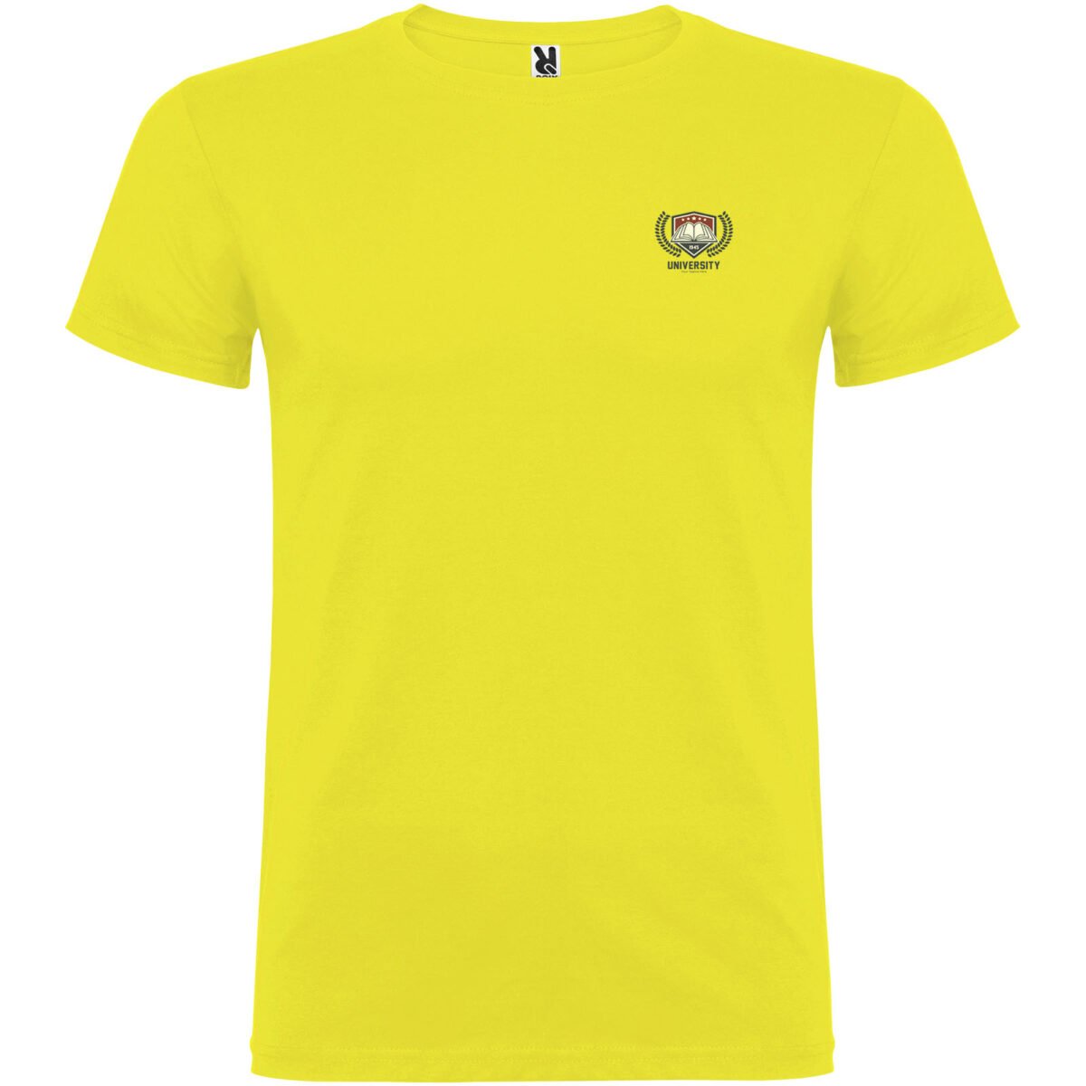 T-shirt à manches courtes avec col rond double épaisseur en élasthanne en tissu tubulaire. Coutures recouvertes renforcées au col. Étiquette détachable. Le mannequin mesure 120 cm et porte la taille 5/6.