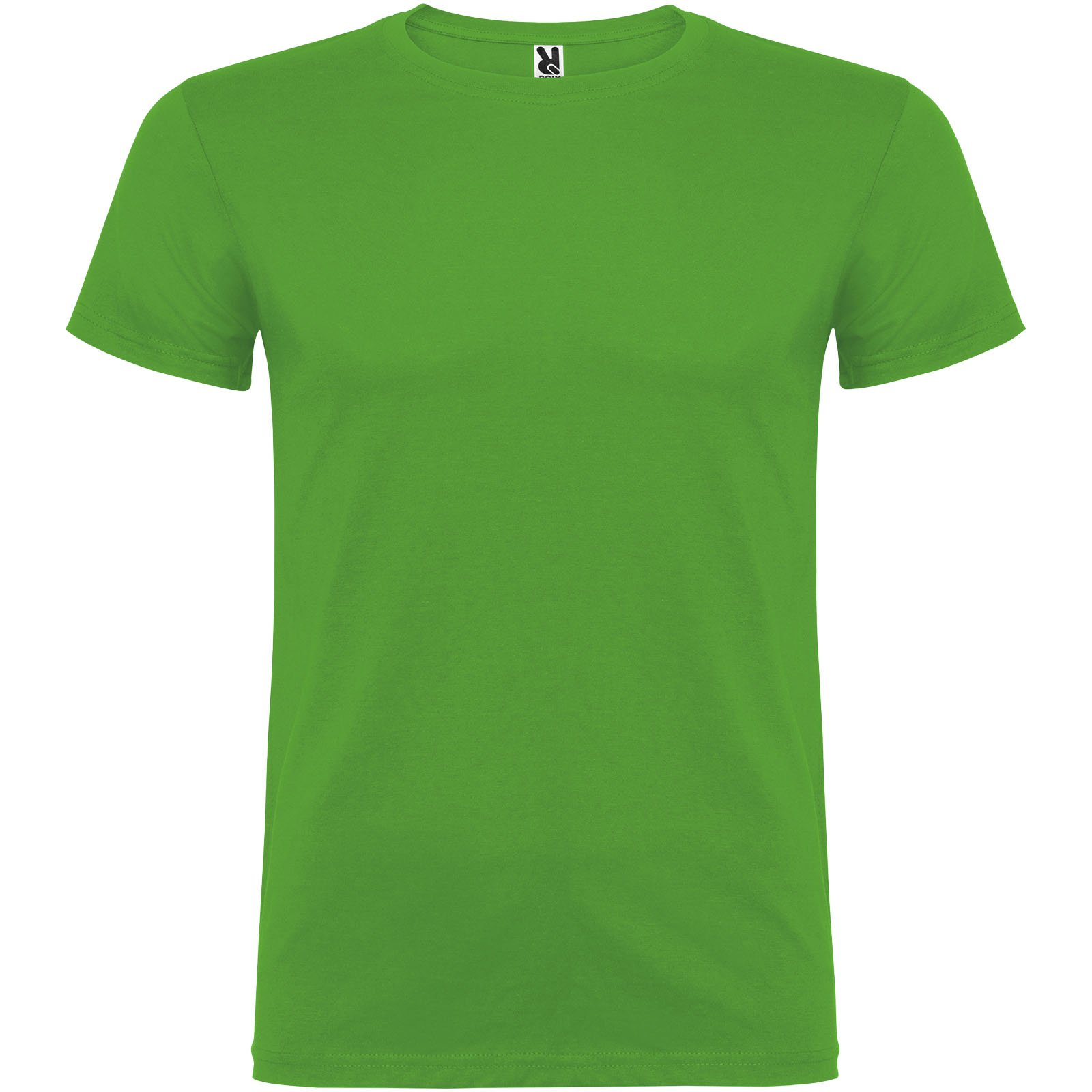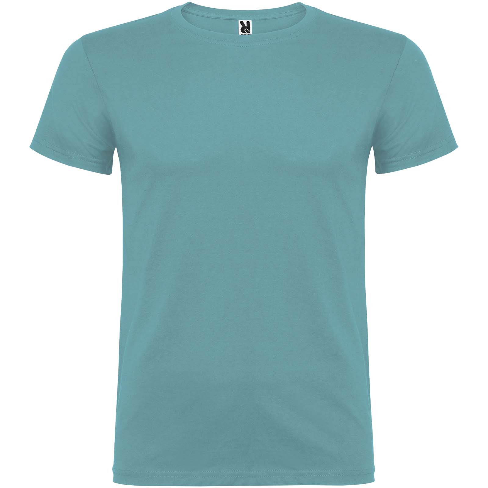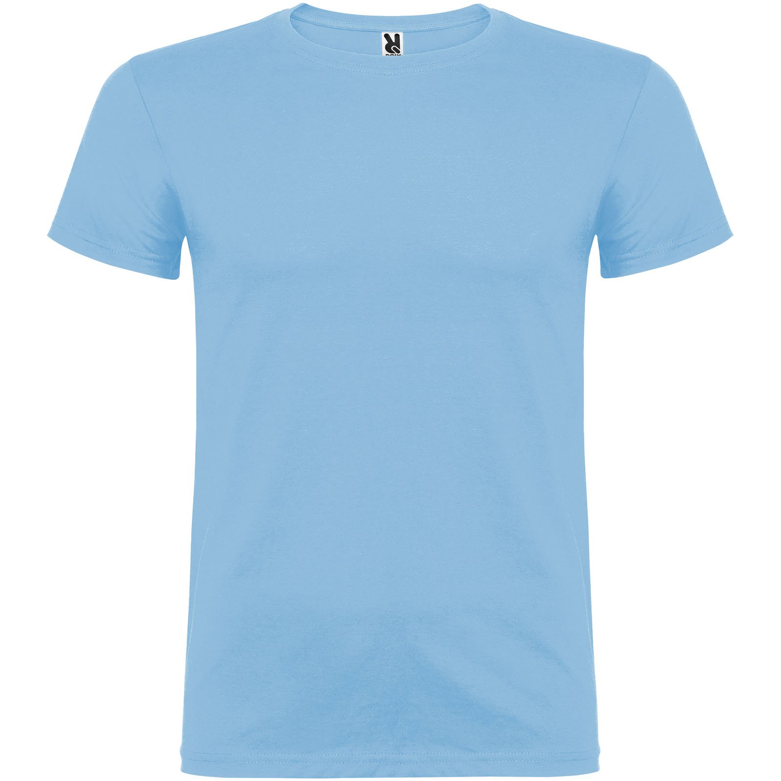 T-shirt à manches courtes avec col rond double épaisseur en élasthanne en tissu tubulaire. Coutures recouvertes renforcées au col. Étiquette détachable. Le mannequin mesure 120 cm et porte la taille 5/6.
