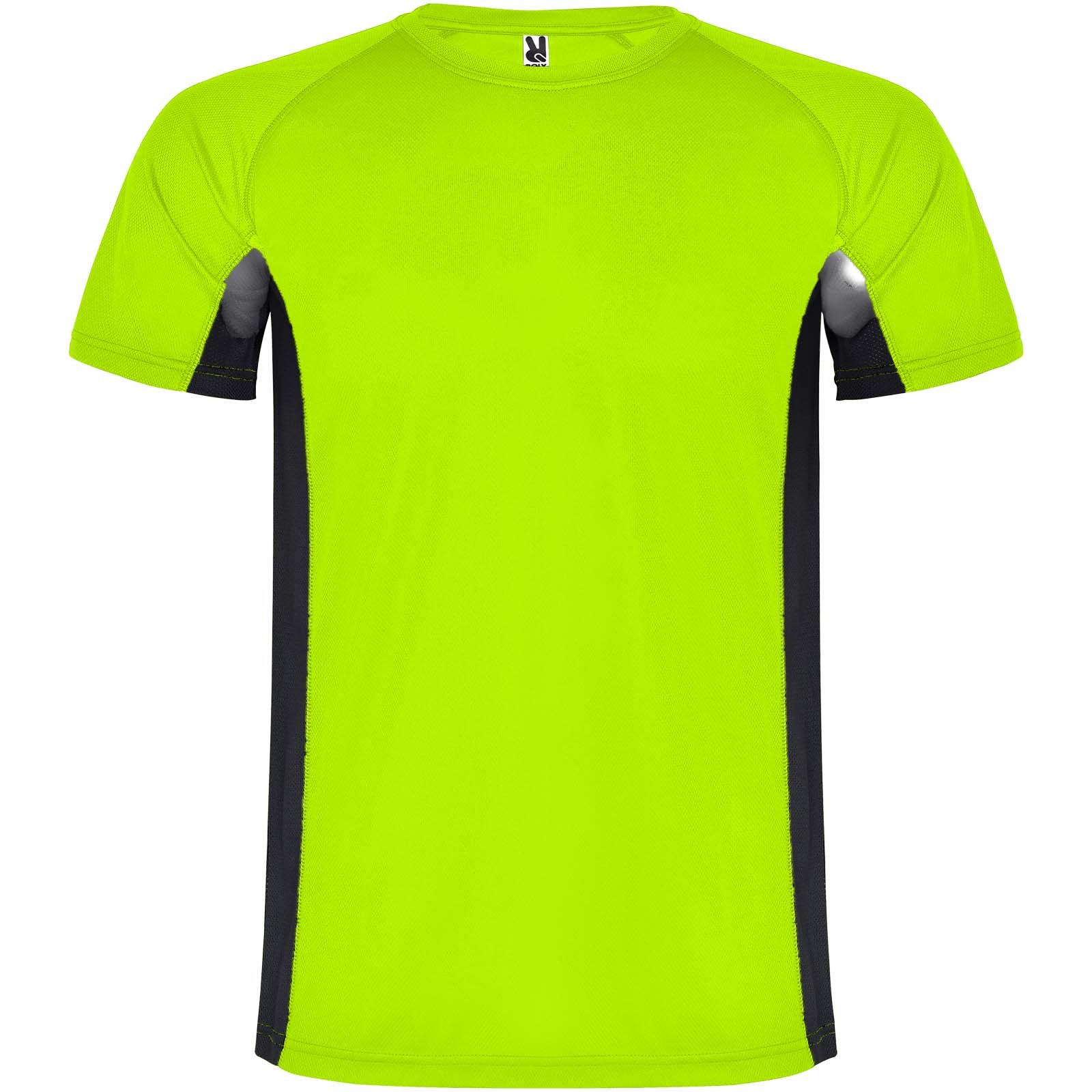Tissu technique et respirant. Confectionné avec deux tissus en polyester : Tissu principal œil d’oiseau, panneaux latéraux et manche intérieure en tissu microperforé. Col ras-du-cou avec surpiqûres intérieures renforcées. Étiquette détachable.