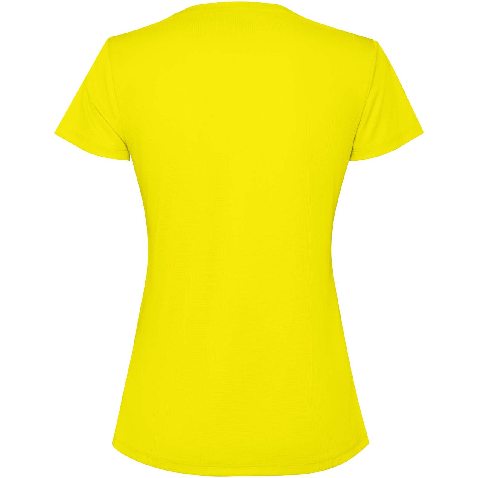 T-shirt technique à manches courtes pour femme. Col avec coutures assorties. L’ourlet du dos est légèrement plus long que celui du devant. Coutures latérales décalées vers l’avant.