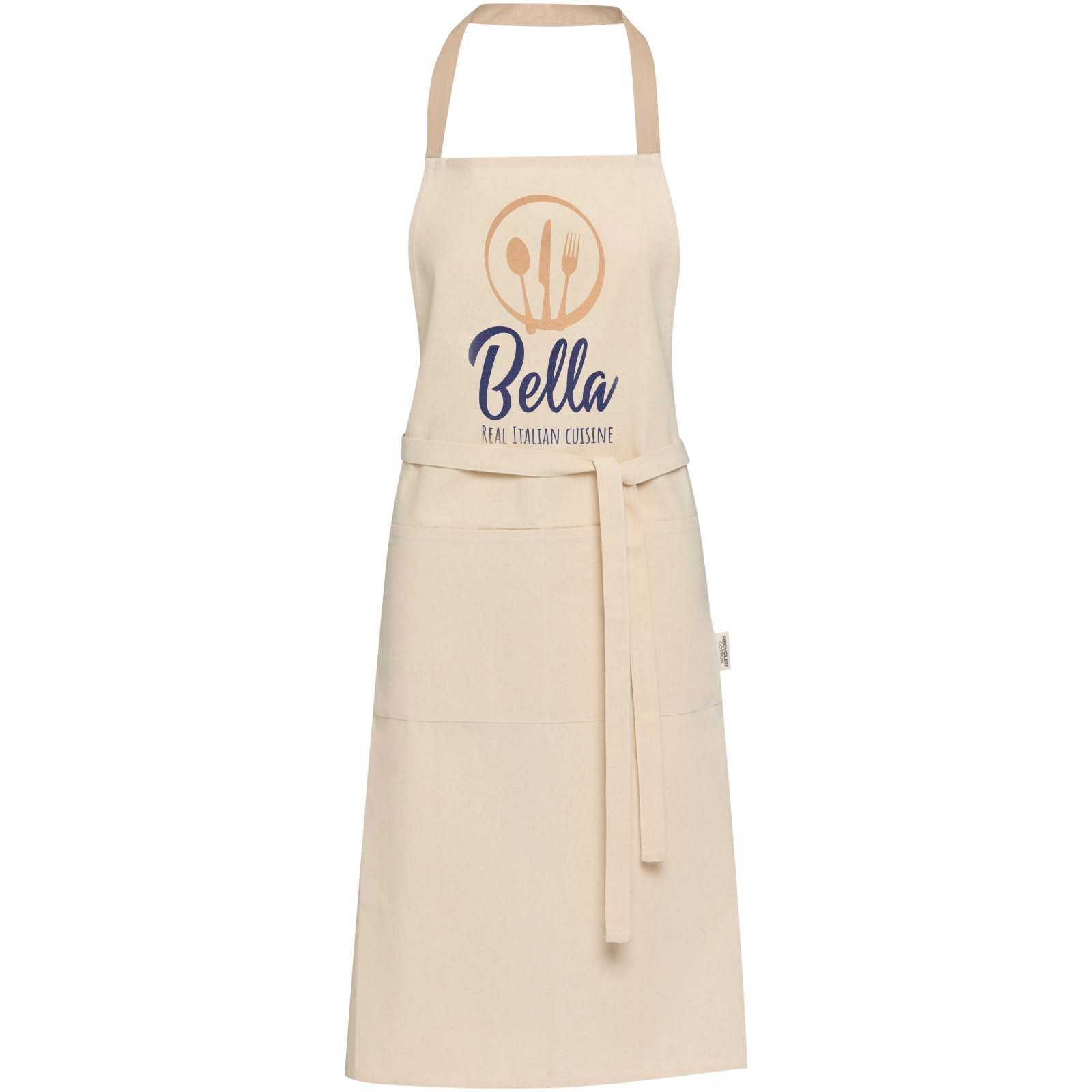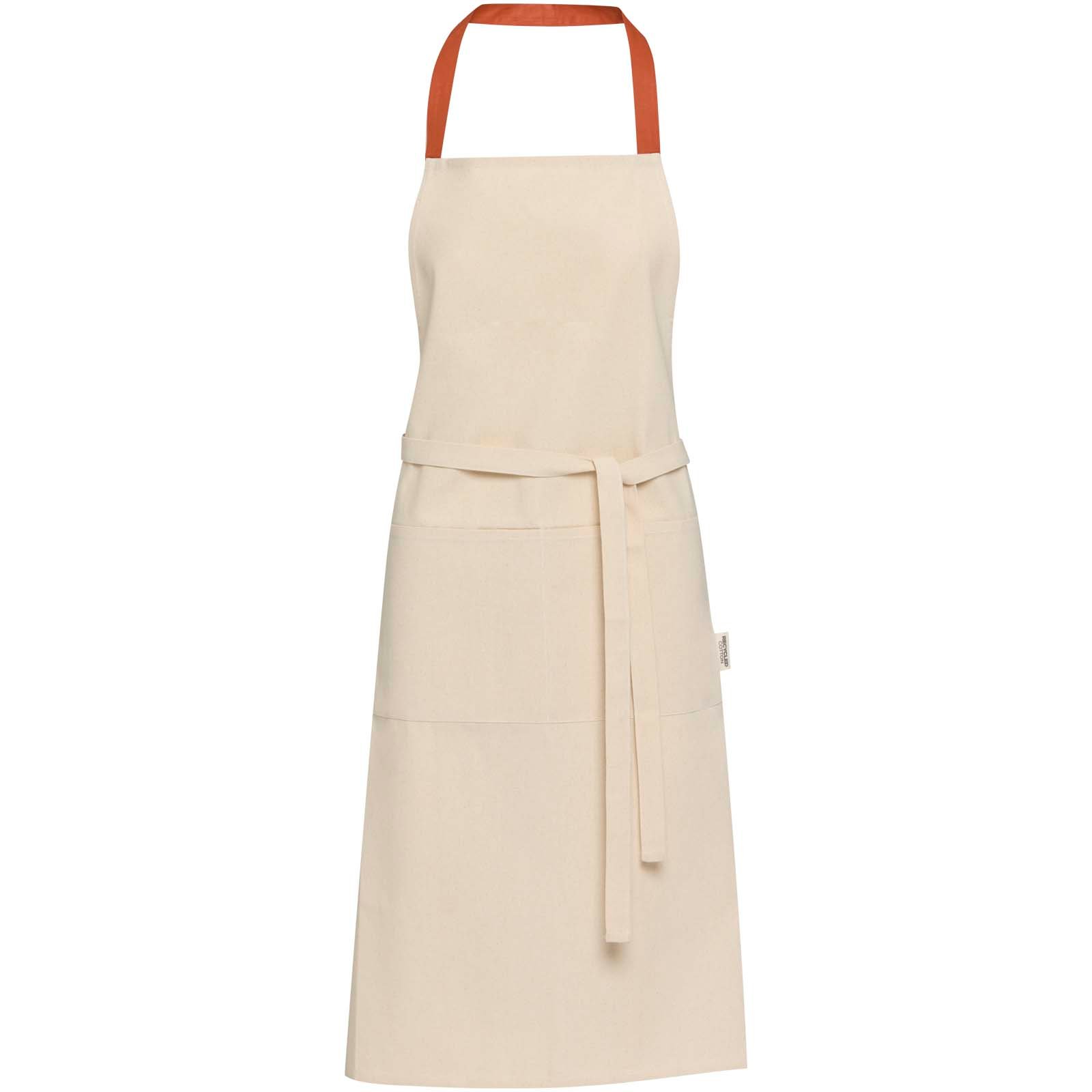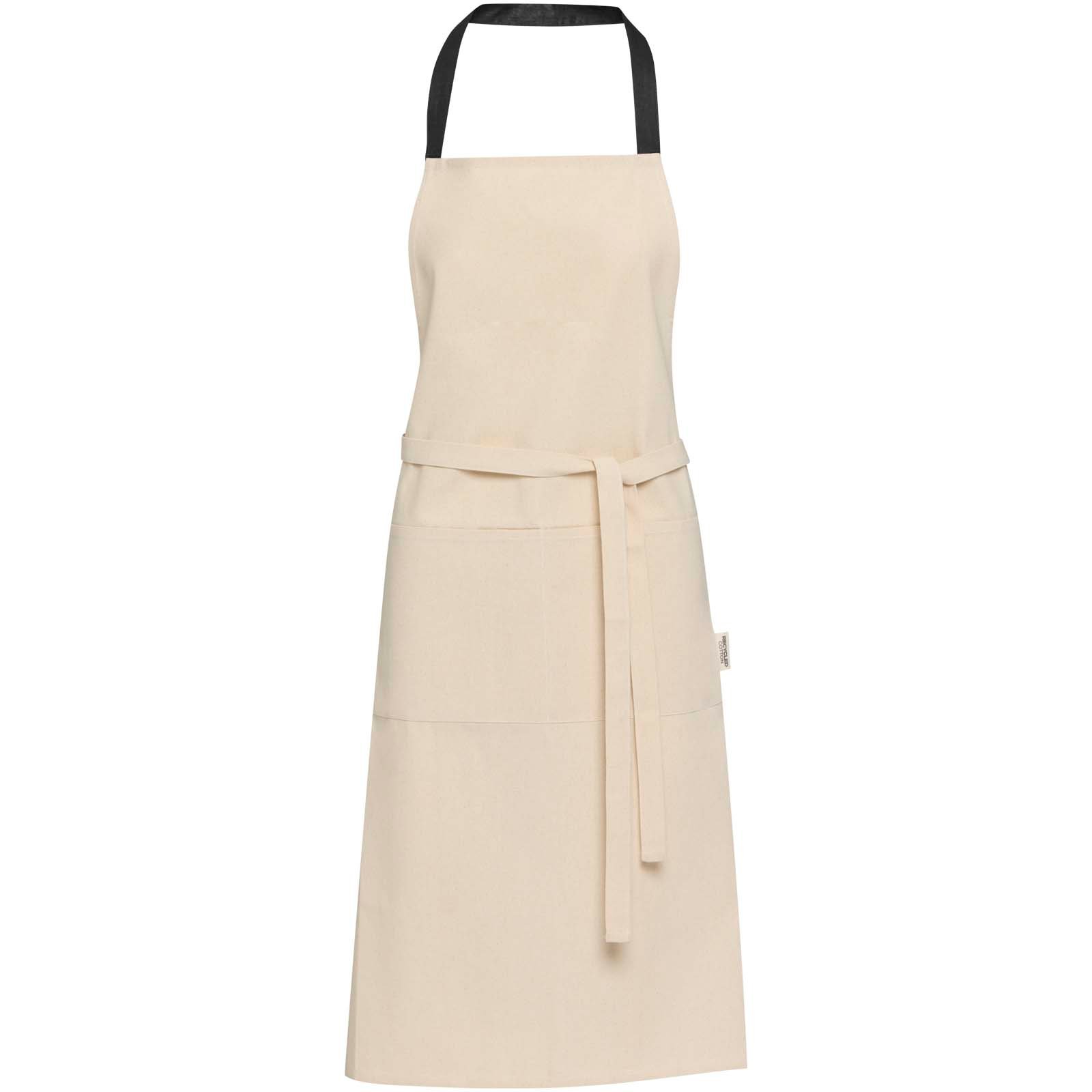 Le tablier Nia est confectionné à 100 % en coton recyclé 200 g/m² certifié GRS. Ce tablier, au coloris coton naturel et tour de cou contrasté, protègera vos vêtements lorsque vous cuisinez. D’une dimension de 45 x 20 cm et doté de deux poches adjacentes et d’une fermeture à nouer d’un mètre, le tablier Nia est à la fois pratique et élégant.