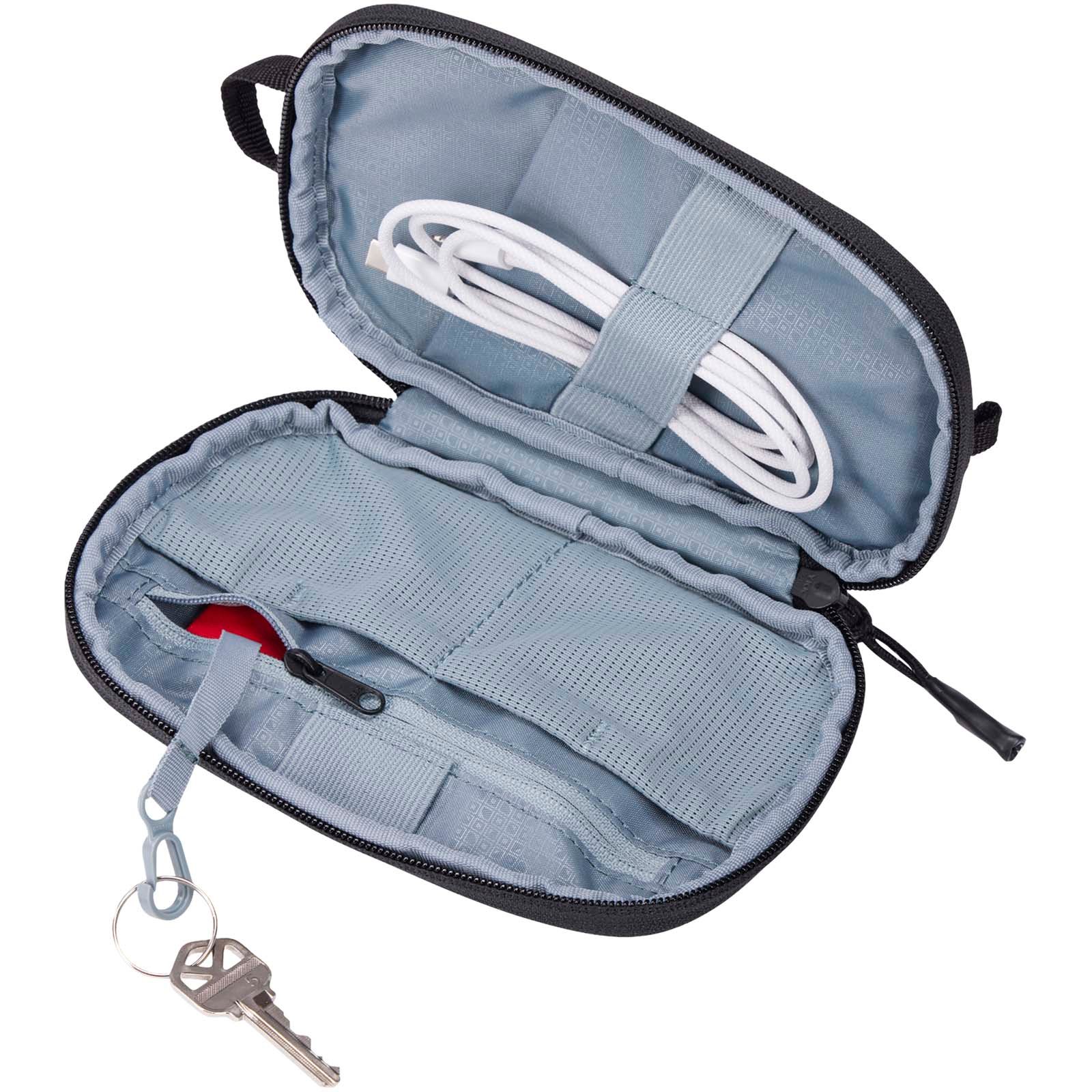 Le mini Thule Subterra Powershuttle offre un espace de rangement bien pensé pour les chargeurs, cordons, adaptateurs, petits appareils électroniques, stylos et autres objets. Cet organiseur est doté de nombreuses poches polyvalentes et de boucles élastiques, ainsi que d’un porte-clés pratique. Son design épuré permet d’accéder facilement aux éléments essentiels lors des déplacements.